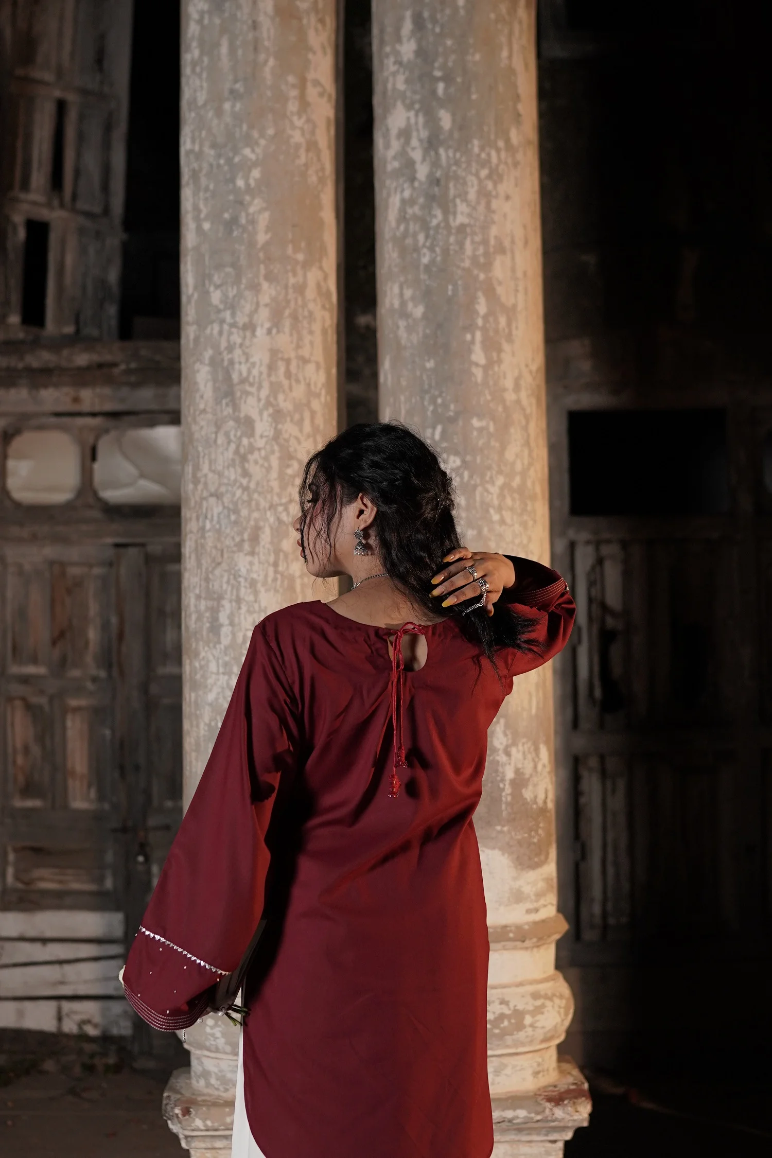 Sleeves: Full sleeves with round cuts and coin work