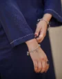 Be the first to review “Navy Blue Dhanak Embroidered Long Shirt with Flared Pants”